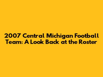 2007 Central Michigan Football Team: A Look Back At The Roster