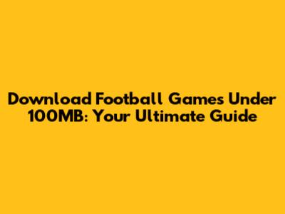 Download Football Games Under 100MB: Your Ultimate Guide
