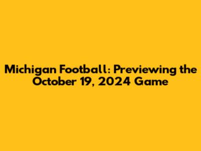 Michigan Football: Previewing The October 19, 2024 Game