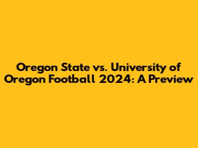 Oregon Vs. Oregon State Football 2024: A Preview